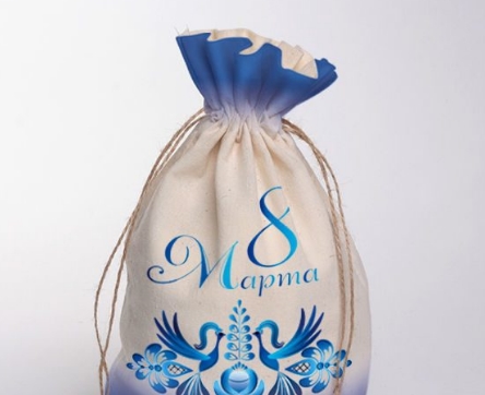 Естественно, основной темой дизайнов мешочков на 8 марта являются цветы. Мы изображаем самые красивые, великолепные цветы, которые сразу навевают мысли о русских традициях. На данный момент большую популярность набирают такие узоры, как хохлома и гжель, эти стили используются во многих сферах. Однако, в сфере упаковок для подарков данный принт встречается довольно редко. У всех наших мешочков единый стиль, они прекрасно смотрятся друг с другом. Вы можете заказать мешочки с разнообразными рисунками и самыми нестандартными цветовыми решениями, которые точно вам понравятся.