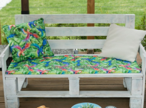 • У нас можно заказать небольшие подушки на скамейки или более крупные по размерам: 400 x 200 x 1000 см. Подушки на лавки из поролона могут быть с завязками или без них.